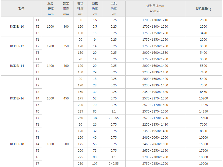 RCDEJ型强迫油循环电磁除铁器适用于输煤港口、大型火电厂、煤矿等对除铁要求特别高的场所。用于悬挂在大型输送皮带上方,能有效清除煤中雷管炮线等细小铁件,对清除杂铁,提高物料品位起到重要的作用,可在粉尘、潮湿、盐雾腐蚀严重的恶劣环境下运行。
